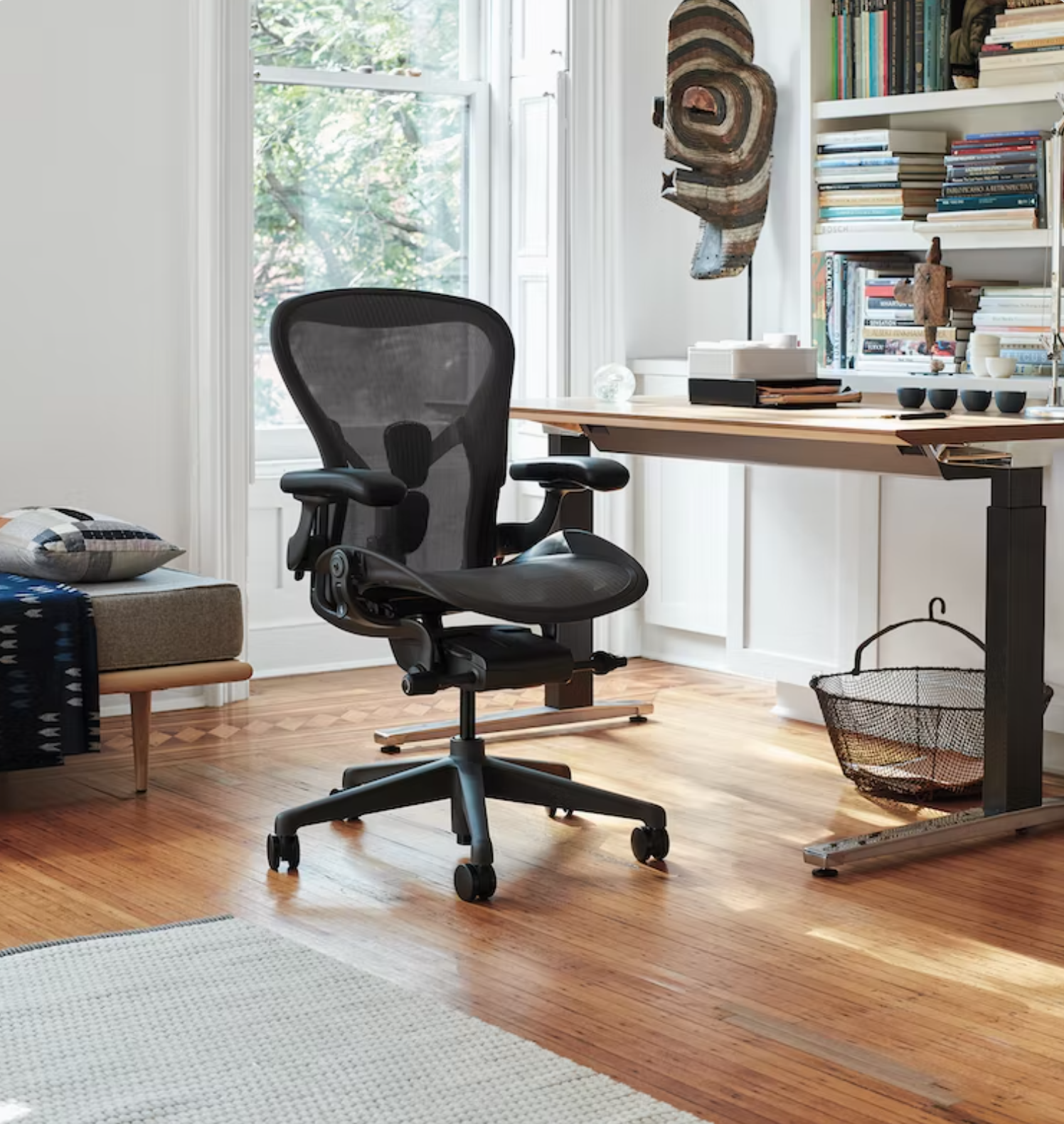 For Iconic Comfort — With over 8 million sold, Aeron is Herman Miller’s most admired and recognized ergonomic office chair. Its innovative design and support for a range of postures, activities, and body types, has made and kept Aeron an icon. And now with the new Onyx colorway, made with plastic waste diverted from the ocean, you can experience the same comfort with more sustainability.